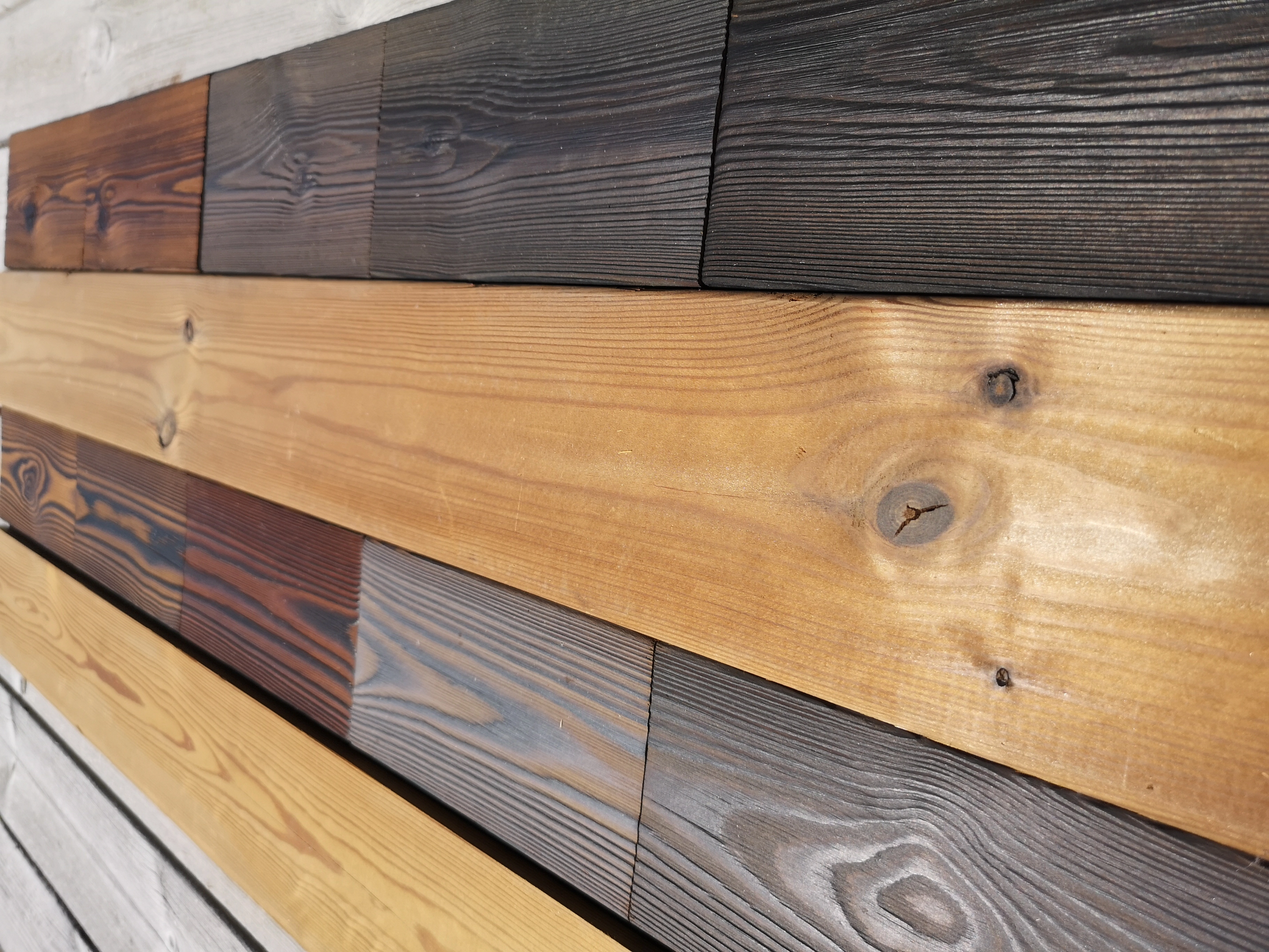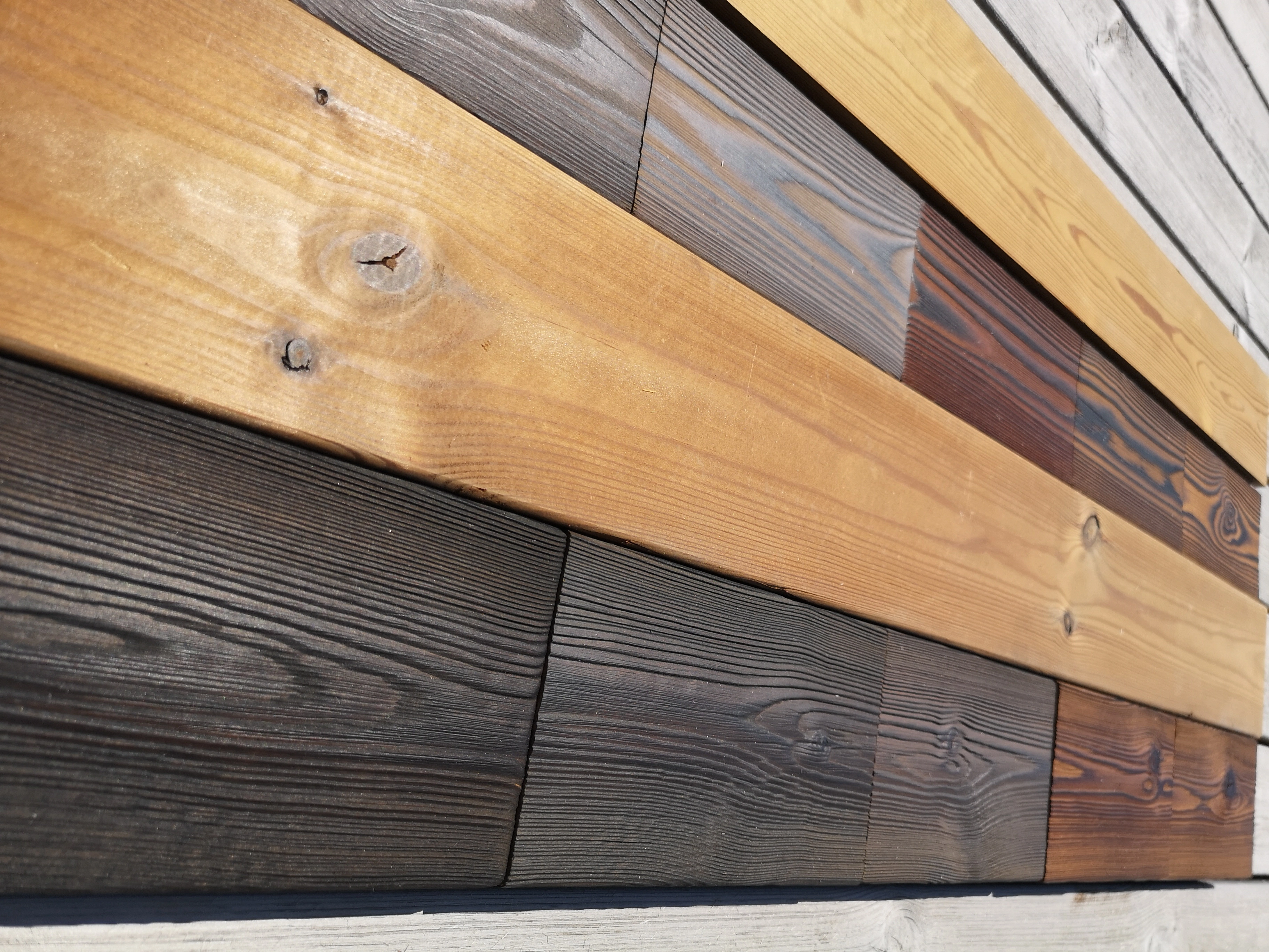 Dėmesio! Neapdorojus termomedienos paviršiaus (alyva ar kita apsaugine danga), jis papilkės, atsišerpetos ir praras pirminę išvaizdą. Tačiau panaudojus medienos deginimo Yakisugi technologiją, išryškinama paviršiaus tekstūra ir suteikiamas unikalus estetinis grožis.