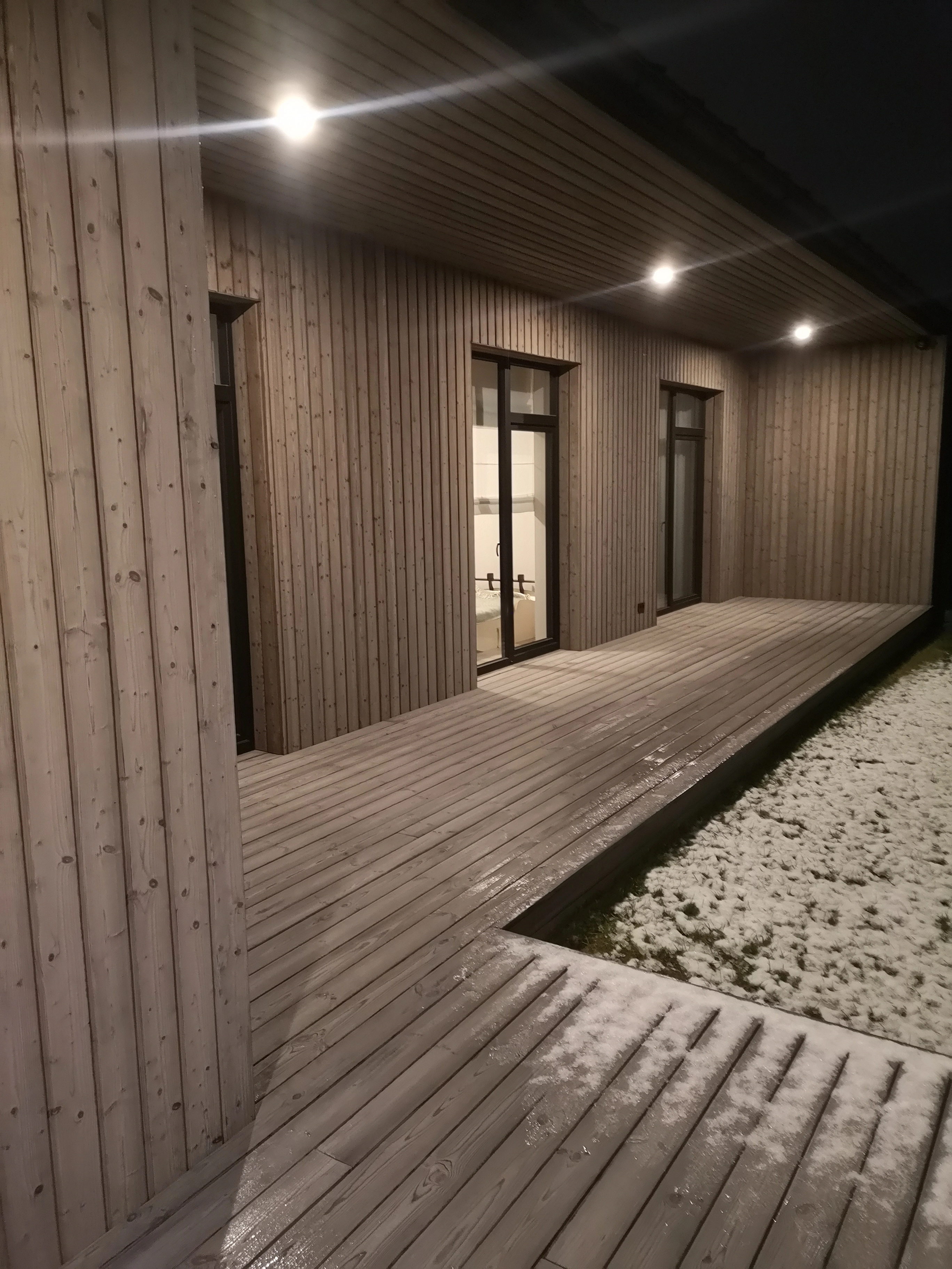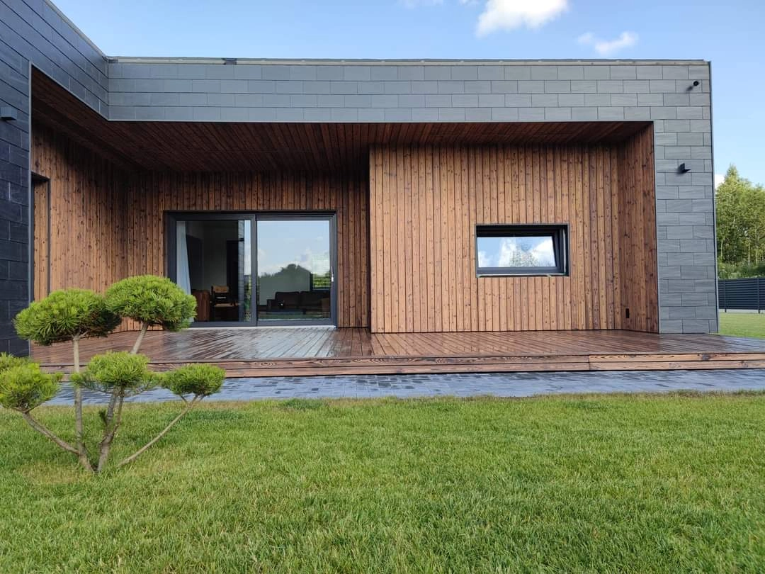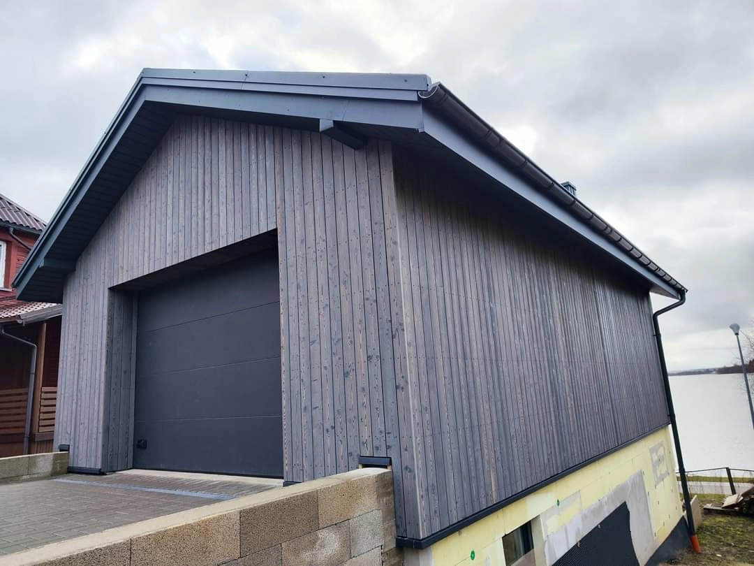 Nepamirškite ir apsauginės dangos svarbos. Renkantis aliejų išlaikysite natūralią medienos išvaizdą ir tekstūrą. Tačiau aliejinė danga turi būti atnaujinama reguliariai, kad išlaikytų savo apsaugines savybes, bei estetinę išvaizda. Beicas suteikia daugiau spalvinės laisvės – galite rinktis iš įvairių atspalvių, kurie dera prie bendro fasado ir aplinkos kolorito. Lakas – tvirčiausias iš šių variantų, sudaro ilgaamžį apsauginį sluoksnį, tačiau gali šiek tiek paslėpti medienos faktūrą. Blizgus lakas suteiks fasadui modernumo ir prabangos įspūdį, o matinis išlaikys natūralesnę medienos išvaizdą.