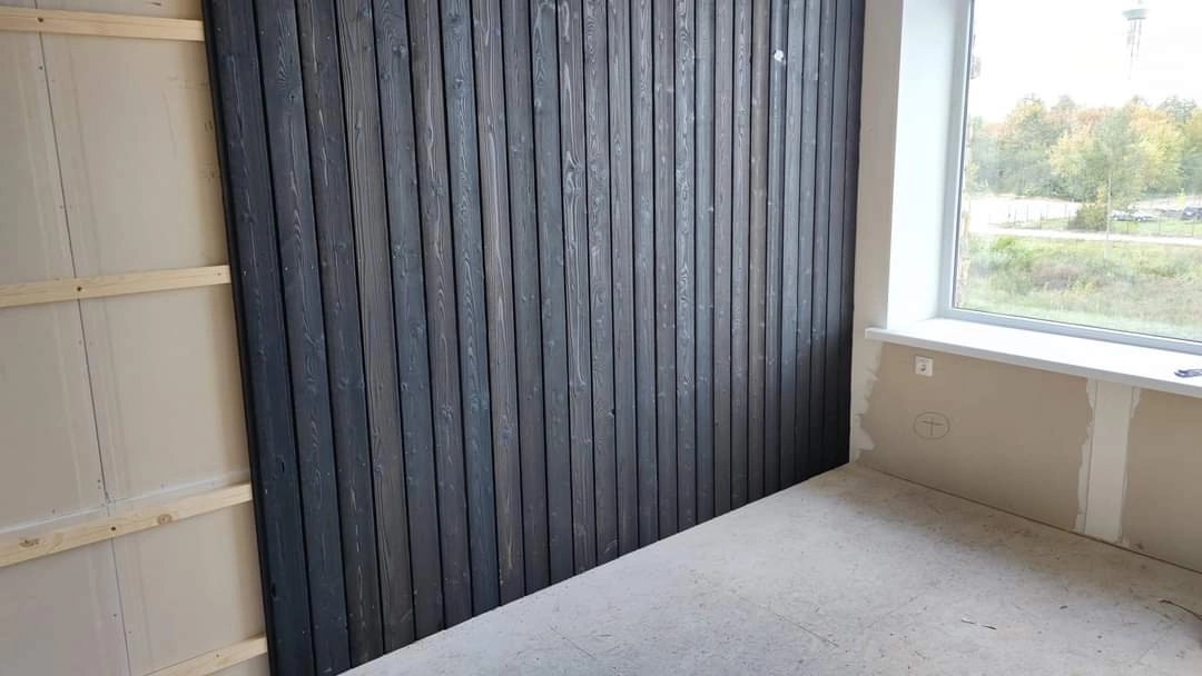 - Sienų apdaila: degintos medienos siena gali tapti pagrindiniu kambario akcentu ir suteikti jam išskirtinumo.